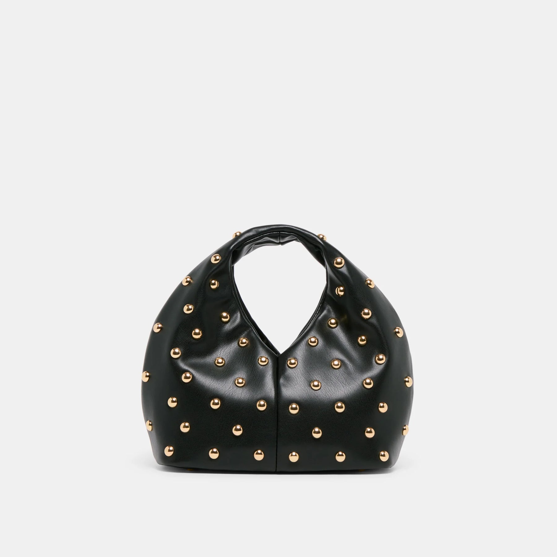Edge that goes with everything. Dotted with gold metal studs, DAHLIA’s modern and slouchy silhouette in black or cream adds bold sophistication to any fall look.