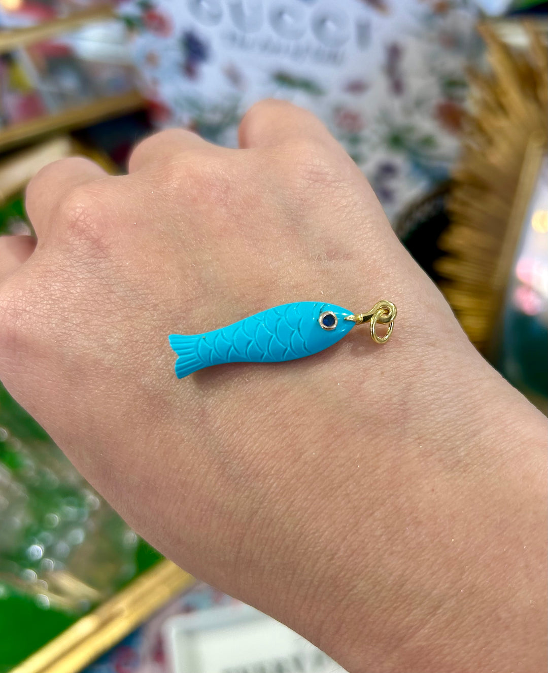 P16256TS 14kt Small Turquoise Fish with Sapphire Eye