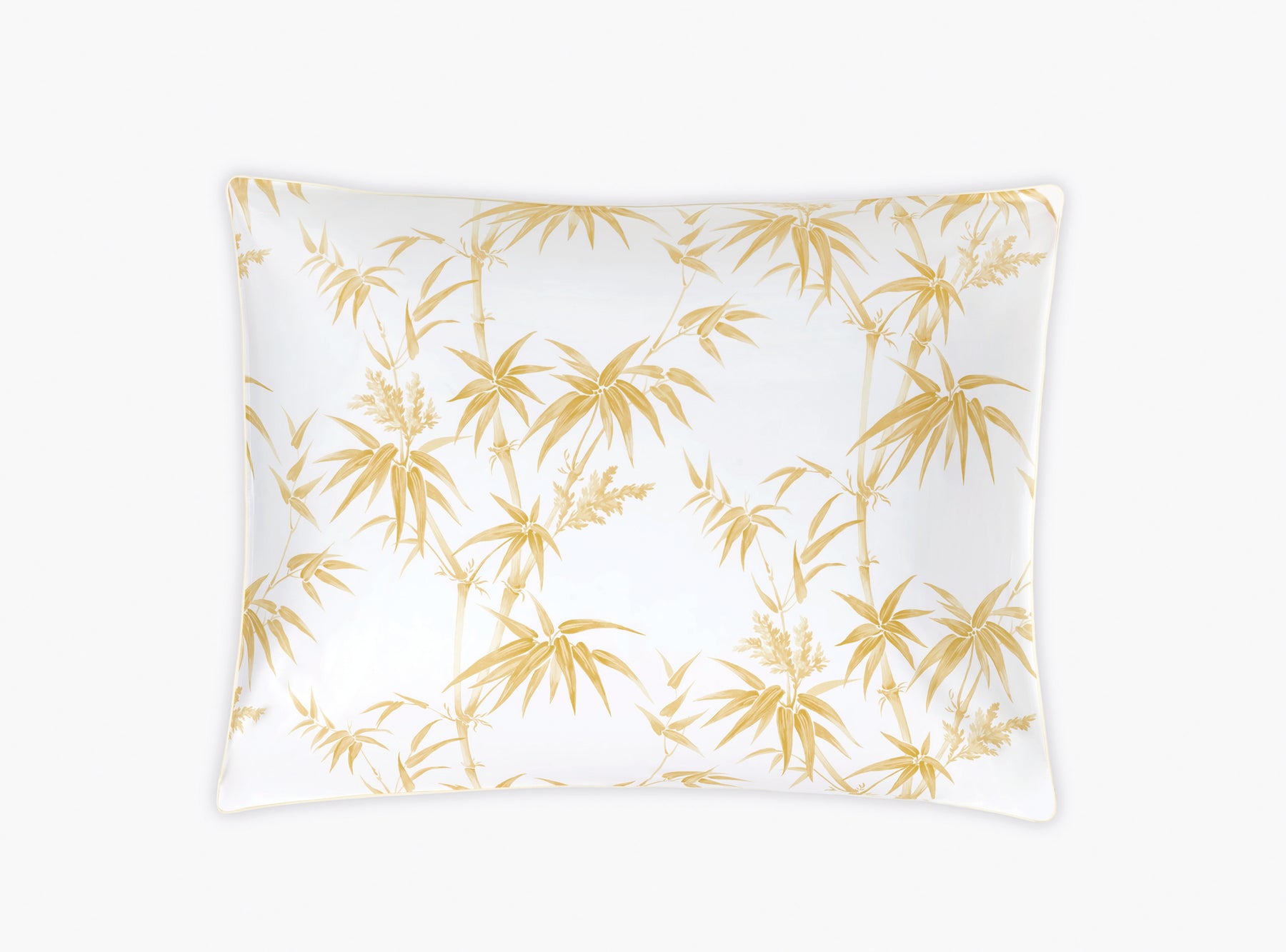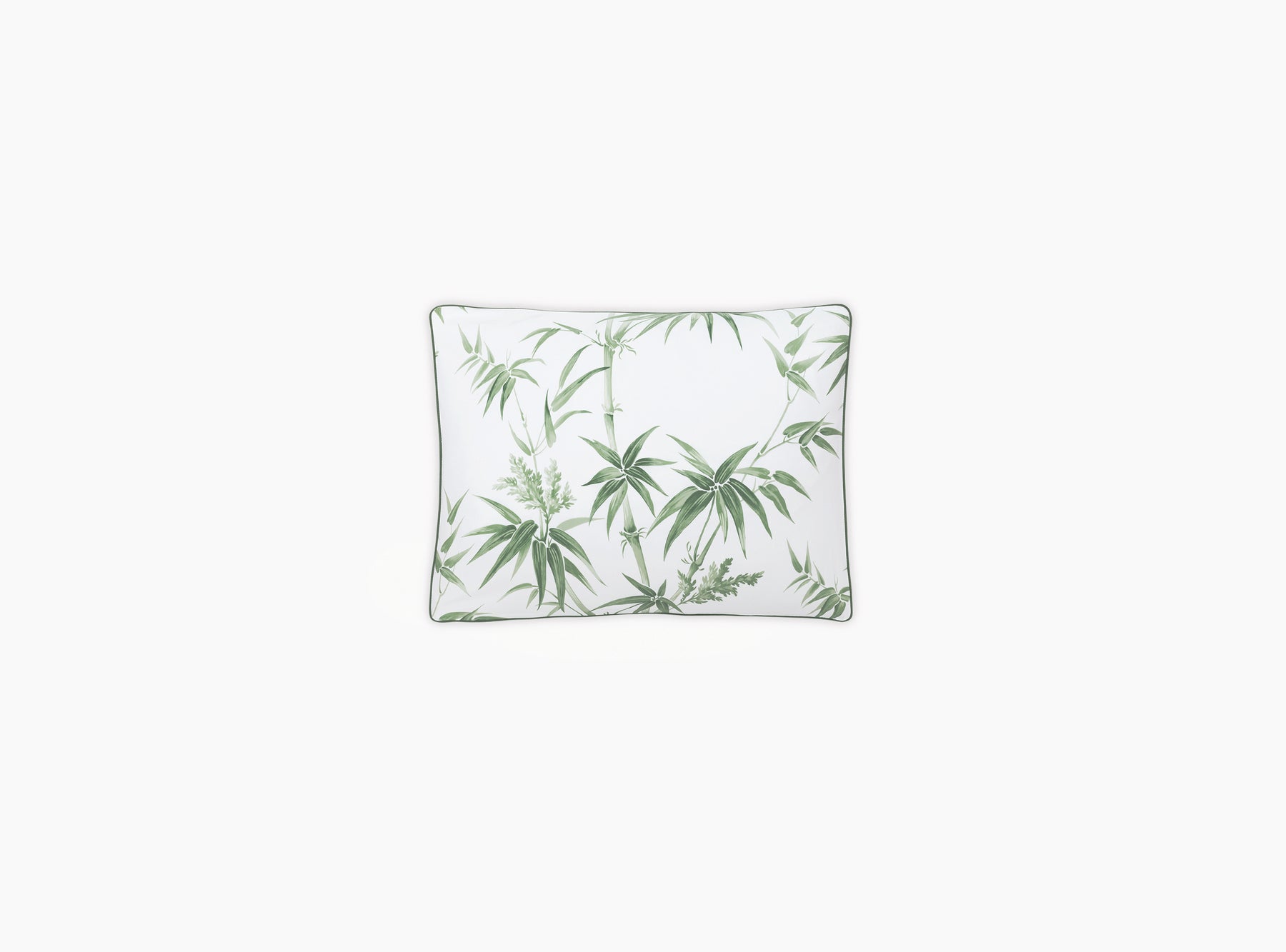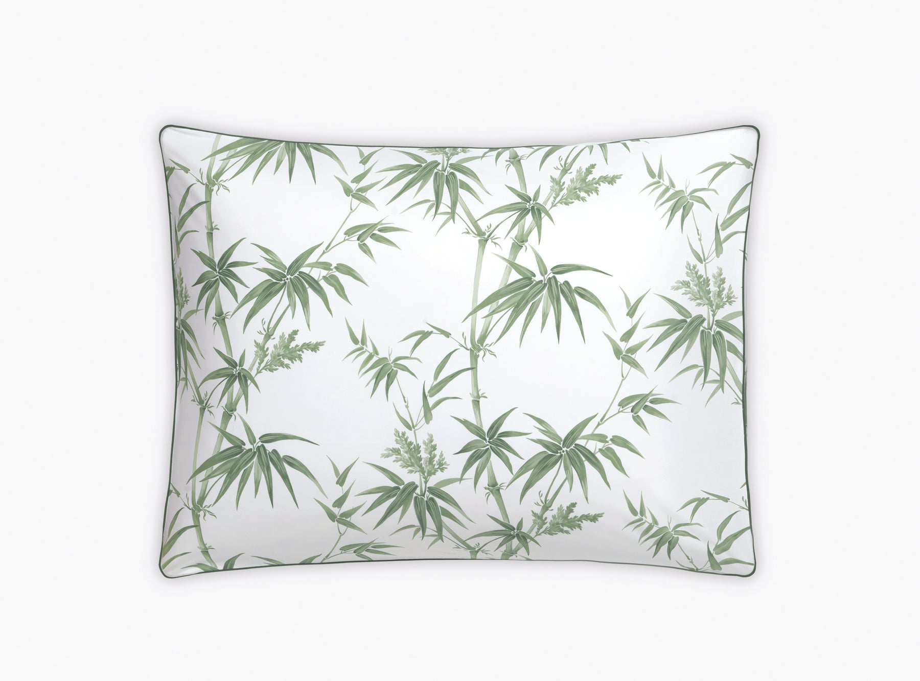 Tropical bamboos sweep across Dominique, a lively design inspired by Schumacher’s Arita floral. The large-scale, airy botanicals add whimsy to any space and are printed in four earthy colors. The design is printed on our 500 thread count Luca Egyptian cotton percale and is finished with a contemporary corded edge.