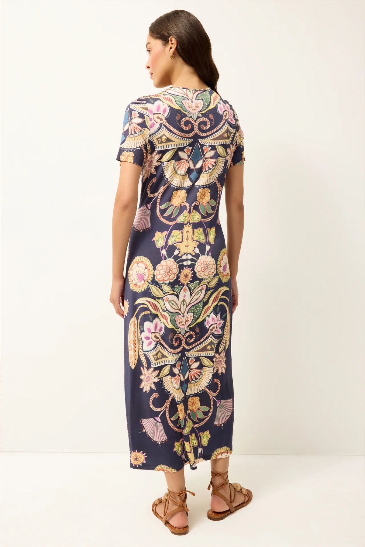 This is vacation dressing at its most effortless. Crafted from a lightweight jersey knit with generous stretch, the easy slip-on style packs with ease and wears comfortably from departure to arrival. Its clean lines make a natural backdrop for Neptune, an abstract floral placement print on a sun-faded navy ground with getaway appeal.