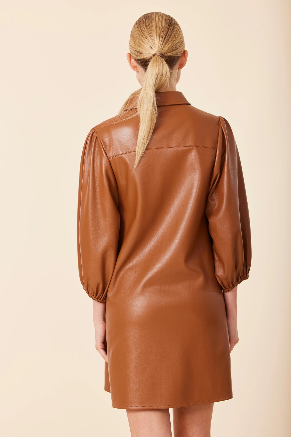 Step into chic sophistication this season with our Best Selling faux leather shirt dress, a perfect statement piece for Fall fashion — now available in new colors. Featuring a classic collared neckline, full button-down front, and puffed 3/4 sleeves, this versatile Fall dress pairs effortlessly with boots or heels for a polished day-to-night look. Crafted from buttery-soft vegan leather, it’s the ultimate blend of style and comfort for your Fall wardrobe.