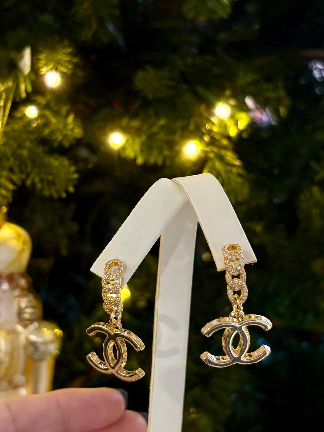 CC on Rhinestone Chain Earrings