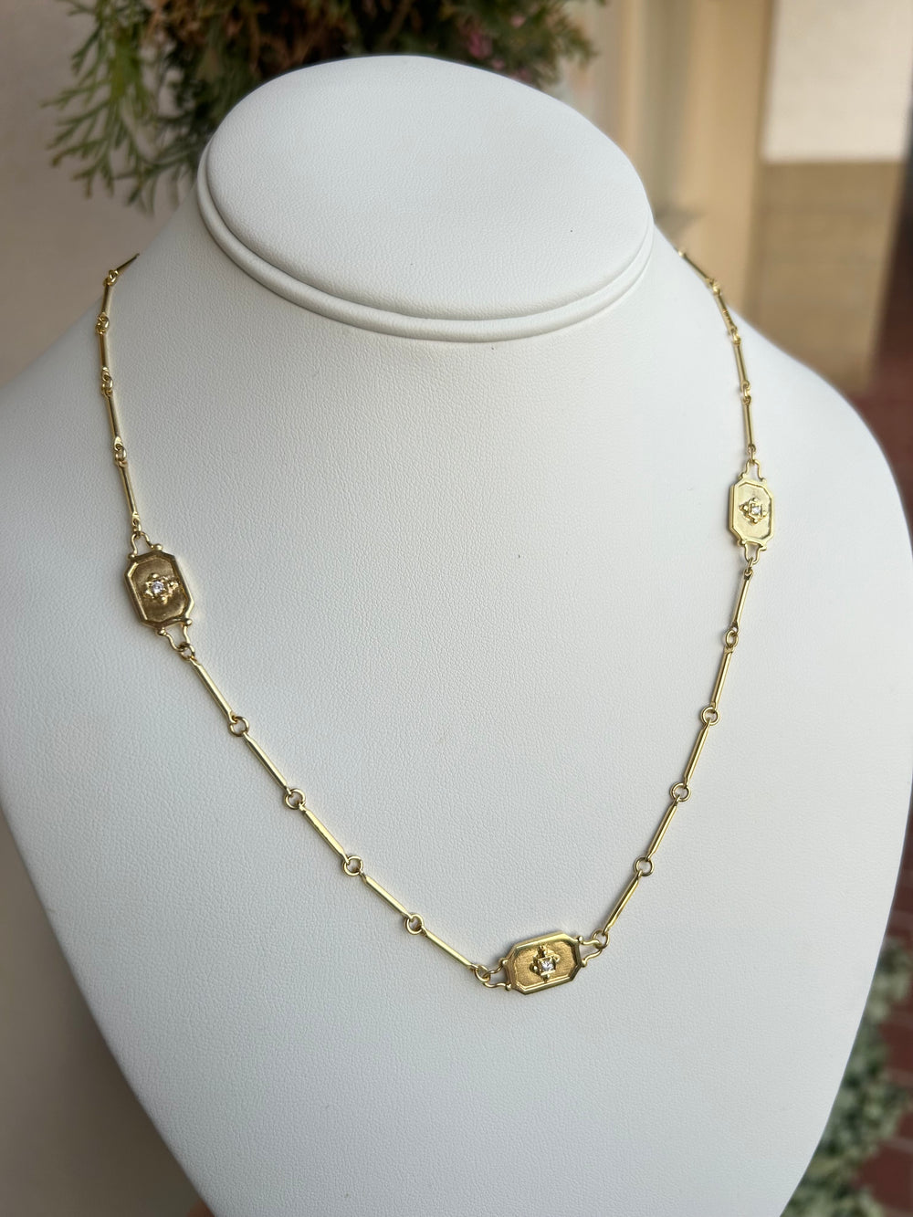 NZ4016P 14Kt Gold and Pearl Station Necklace