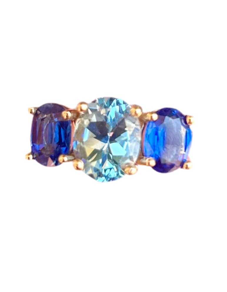 14kt 3 Stone Ring with Sky Blue Topaz & Kyanite