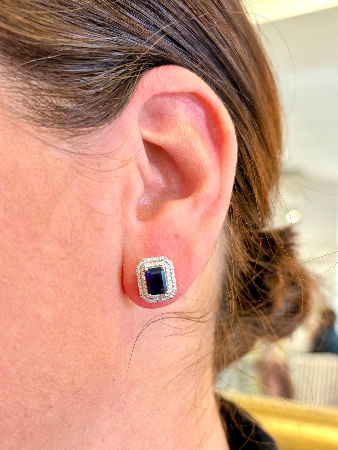 E-2256 14kt Yellow Gold Diamond & Sapphire Studs