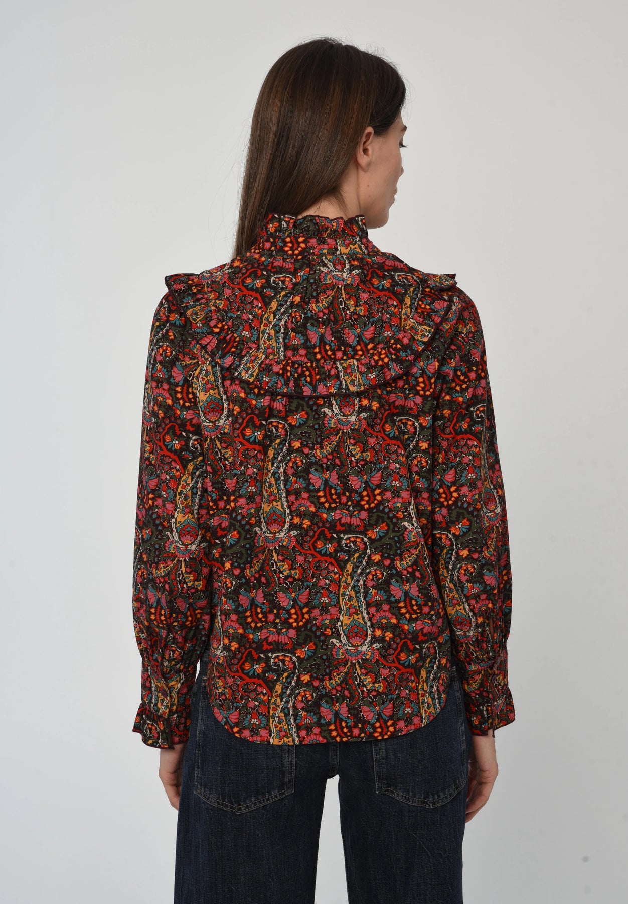 Faylin Top in the Harliequin print is perfect for a statement top this Holiday season. Designed with details like a ruffle trim