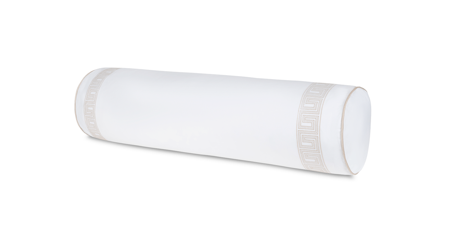 Inspired by an intricately beaded Schumacher tape, our boldly embroidered Ophelia collection embodies a traditional Greek key pattern with a bespoke sensibility. Now available on our signature Camilla Pique with a coordinating corded edge in Nocturne sateen, it’s a playful, exuberant take on a traditional motif.