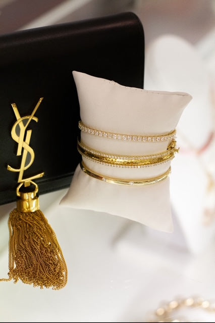 14kt 1.92ct Diamond Gold Hammered Saddle Bangle