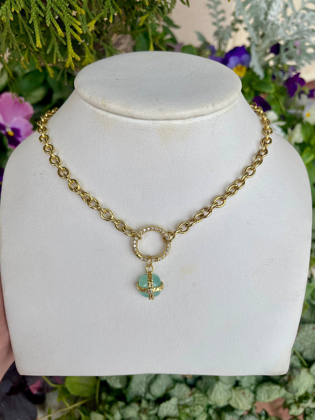 14kt Gold Chalcedony Venetian Glass Charm with Diamond Center