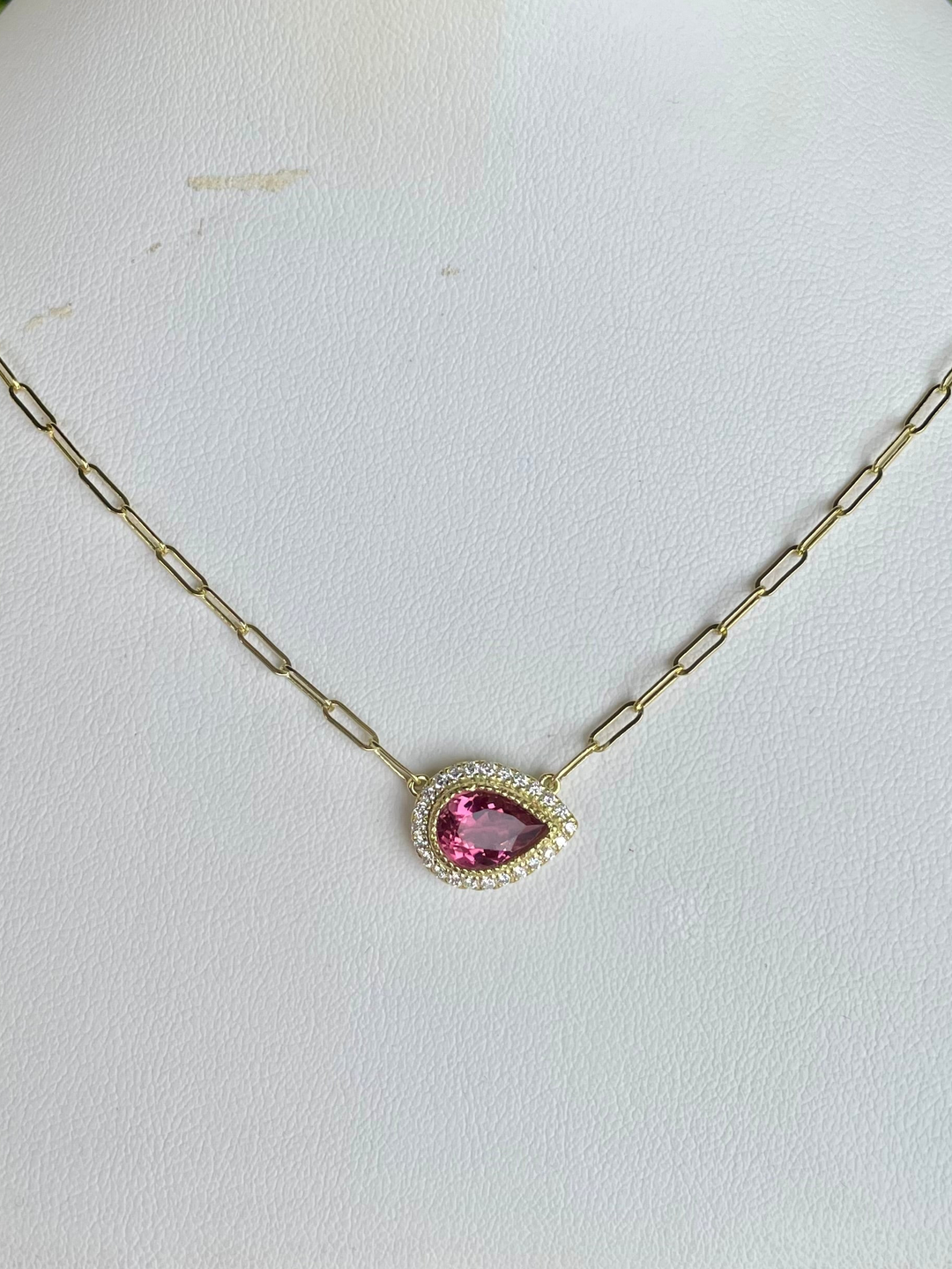 14kt Pink Tourmaline Teardrop Diamond Necklace
