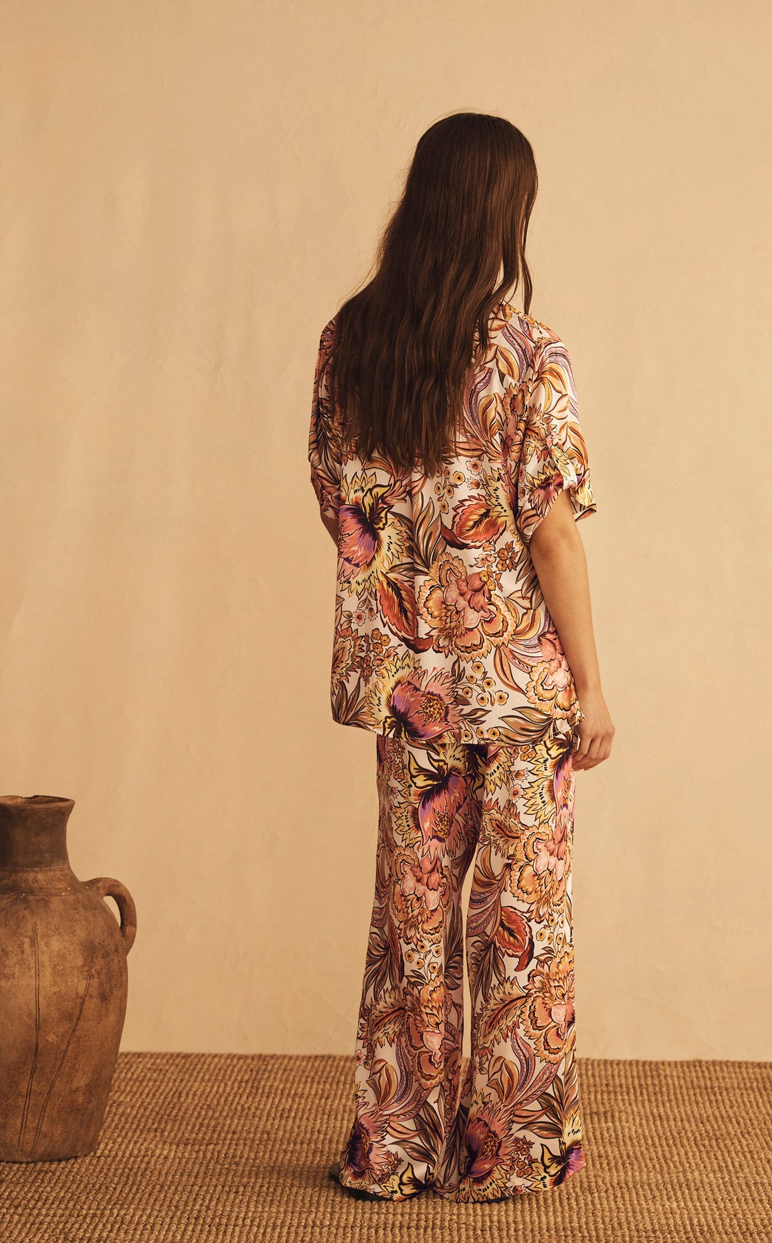 Effortlessly embracing sophisticated minimalism. The Silk Cuffed Short Sleeve Shirt has a luxuriously soft drape and is a relaxed boxy fit featuring a collared v neckline, button through front and cuffed short sleeves. Wear it unbuttoned over your swimsuit or style with coordinating Silk Gathered Wide Leg Pant for a chic resort look.