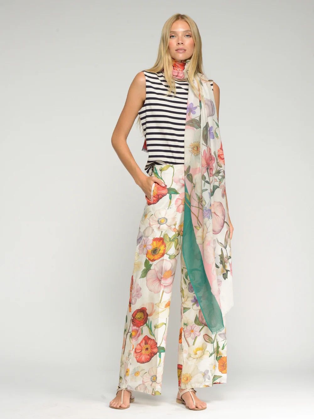 Embrace effortless style with these floral print trousers featuring a relaxed wide-leg silhouette and flowing fabric for all-day comfort. Practical side pockets at the front and patch pockets at the back keep essentials within reach, while the elasticated waistband at the back ensures a secure, adjustable fit. Perfect for creating versatile looks that transition seamlessly from casual to dressed-up occasions.