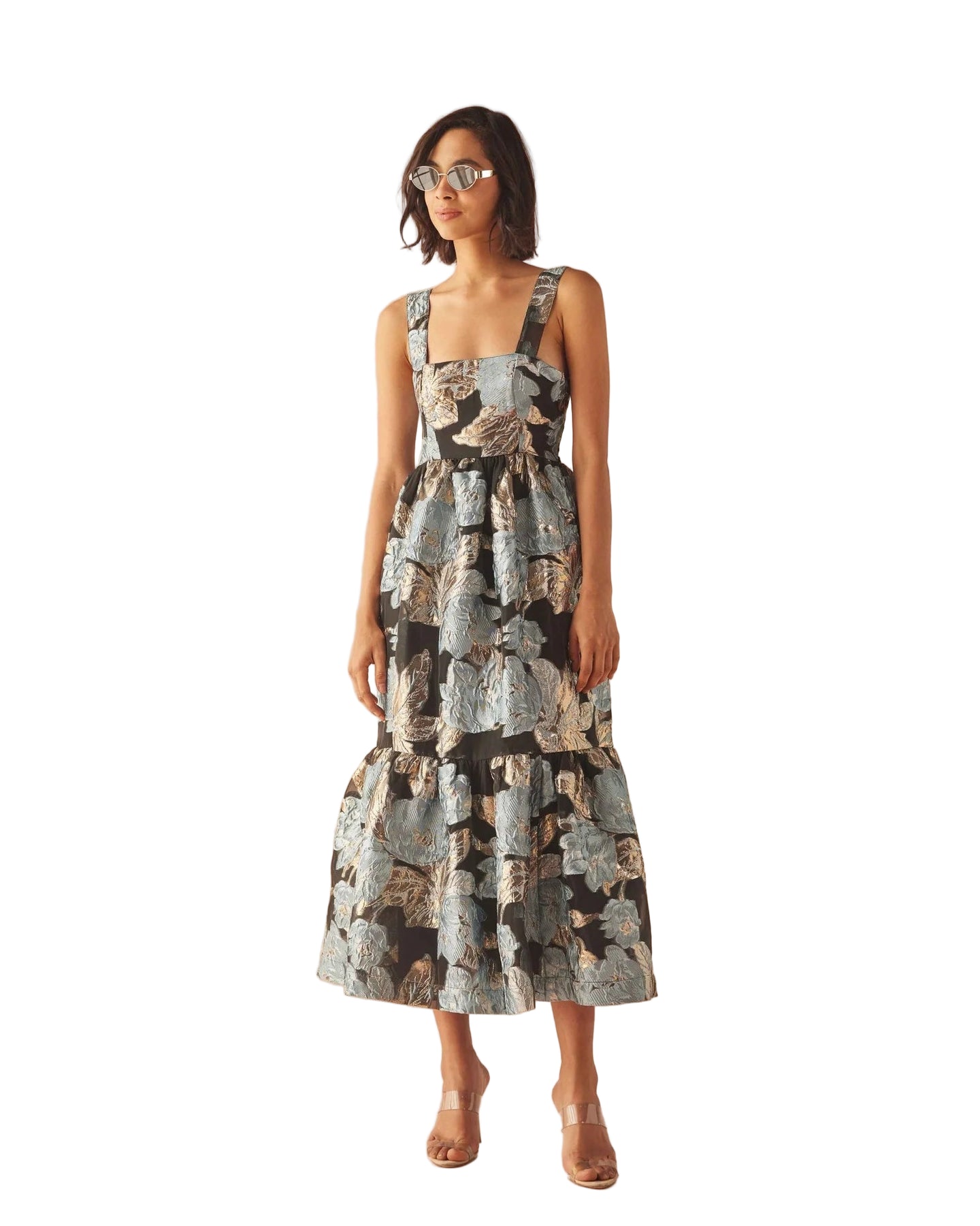 Get an instant boost of confidence in the Leena Maxi, designed with adjustable straps and a flattering high-waist effect that complements the tiered skirt. She's ready for your most-special occasions (or no occasion at all).