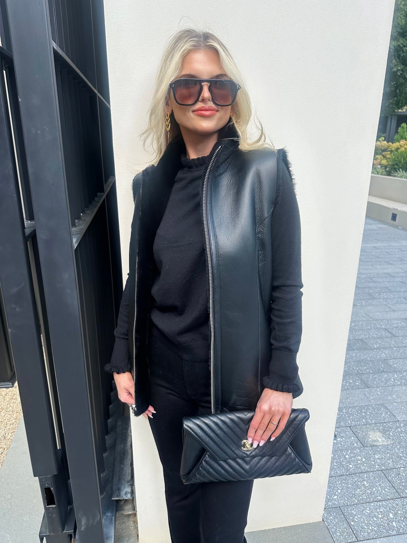 Linda Richards Genuine Shearling Reversible Vest | Black