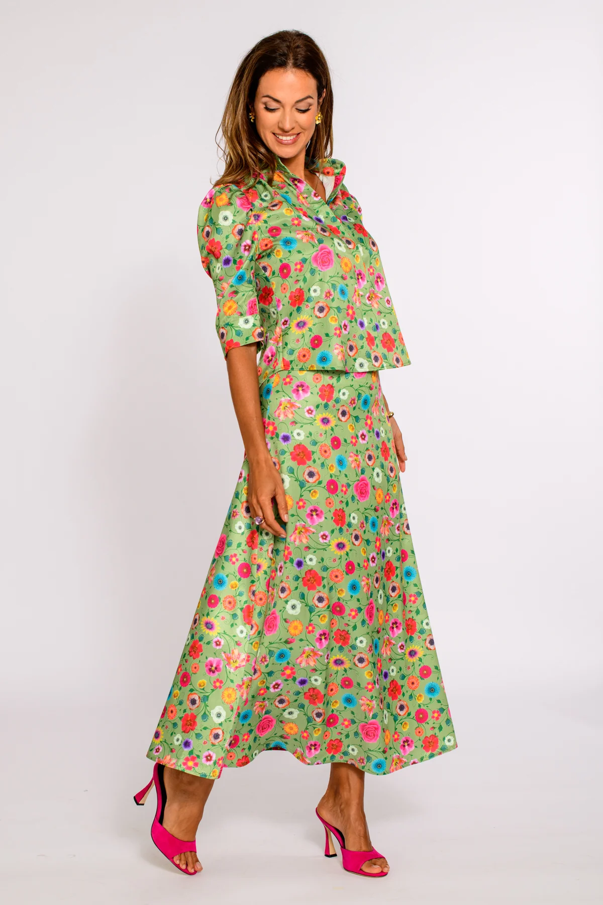 The Ruthie Top is a chic, button-down blouse with a mandarin collar and fun gathered sleeves. She is the perfect length for pairing with your favorite pants or skirts, whether you choose to tuck her in or wear her loose. Swap out a pair of high waisted jeans for a matching skirt to bring this top from day to night.