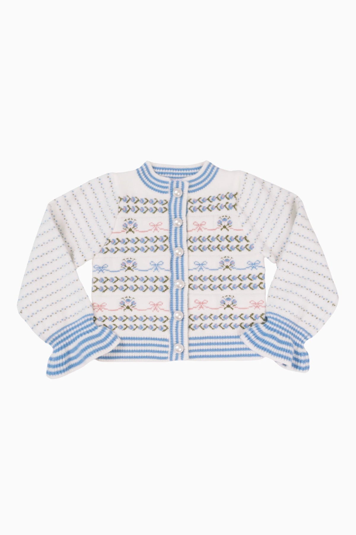 Brighten up her wardrobe with this sweet tween sweater, detailed with pearl buttons & delicate ruffle accents. An intricate design adds a touch of charm, making it both playful & polished. Pair it with our Aria Tween Skirt for a cozy-cute look!