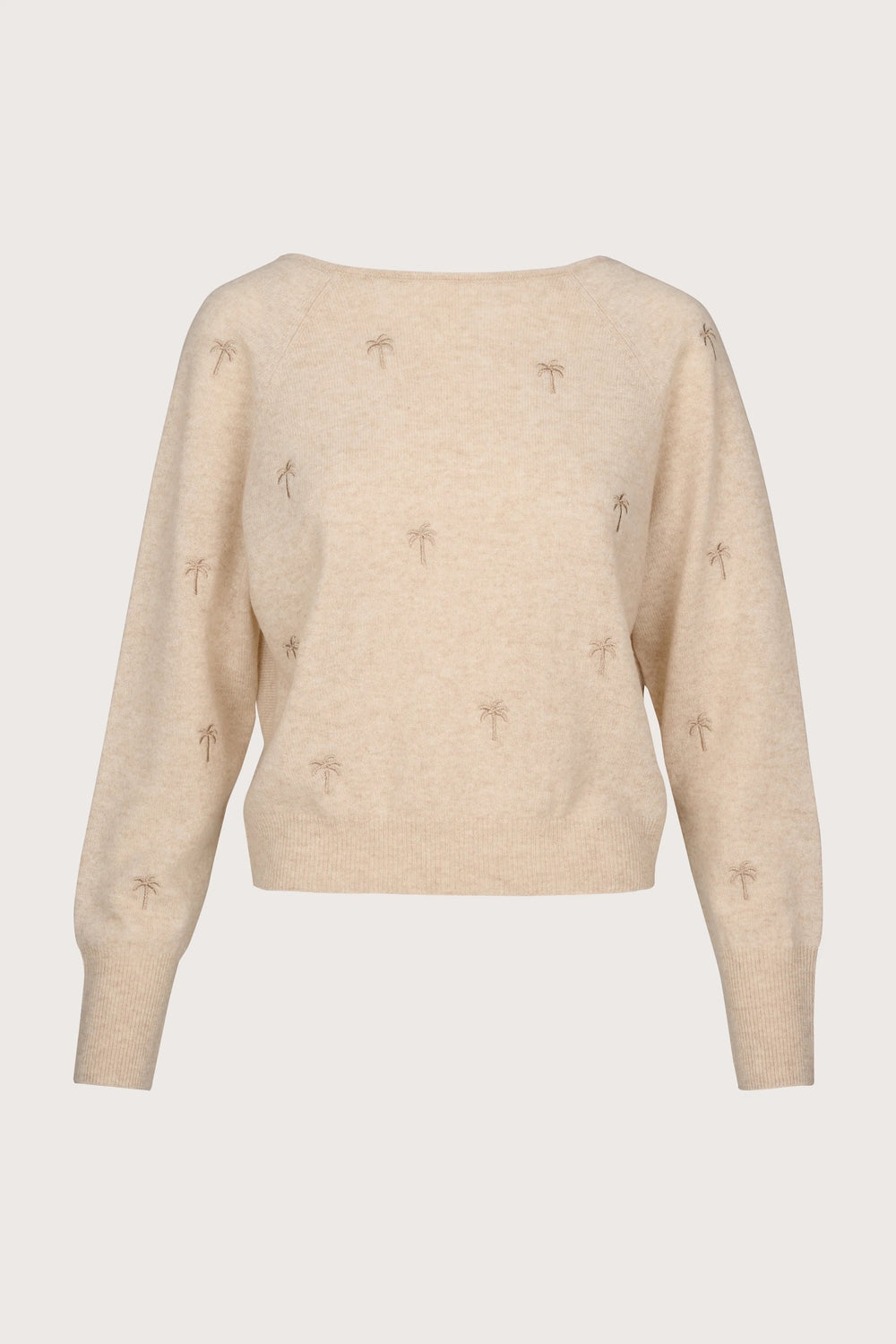 Embroidery Palm Twist Boat Neck Sweater | Cygnet