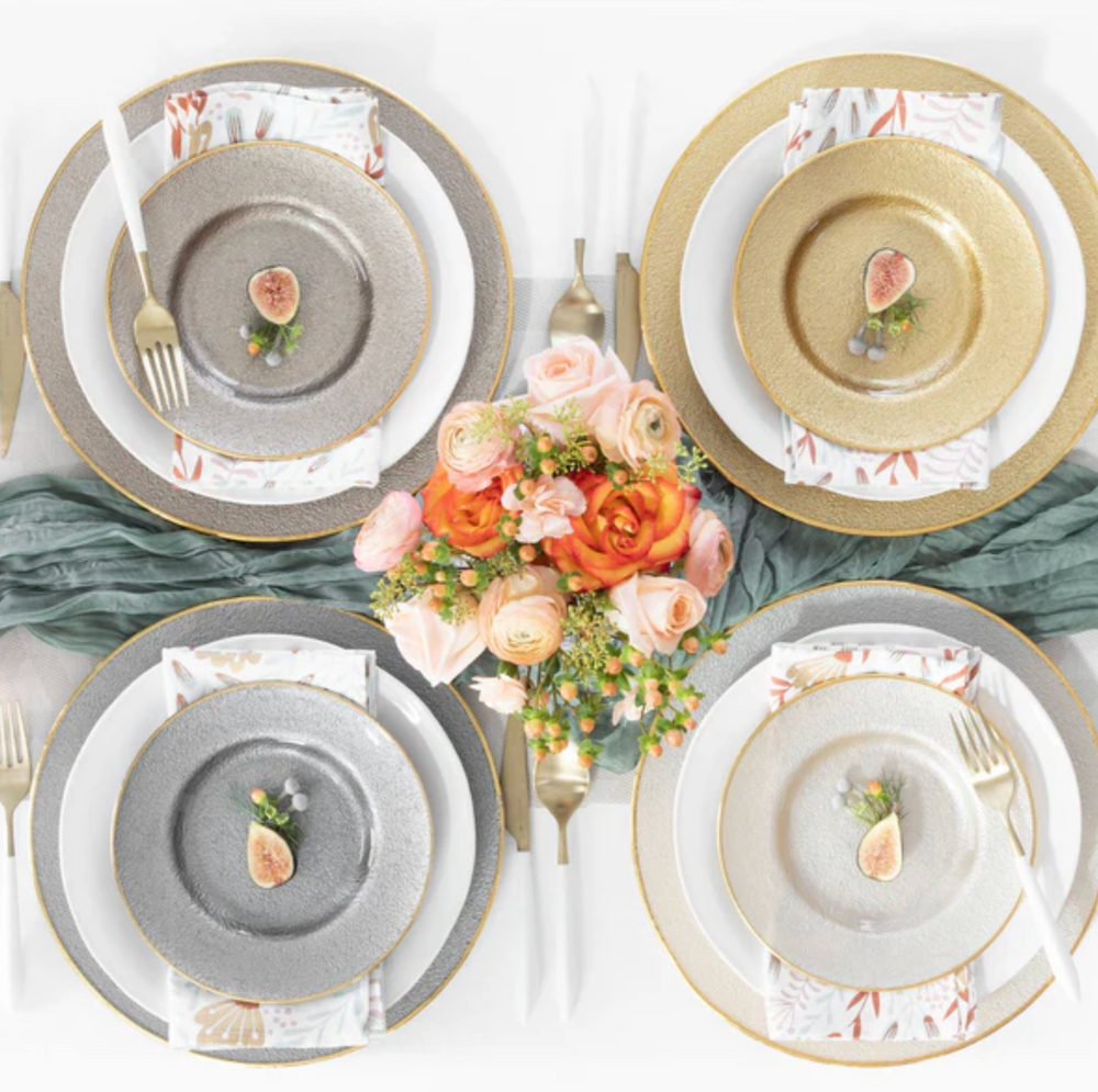 The Vietri collection features fine Italian-made glassware and wooden accessories for the home, emphasizing artistry and handcrafted quality. Products predominantly include glassware in the Onda and Moon Glass series, offering items like vases, bowls, and cake stands, often with ruffled or wave-like textures and available in colors such as cobalt. Additionally, the collection offers Florentine Wooden Accessories, which are decorative and functional pieces like trays and napkin holders that feature intricate gold and colorful detailing.