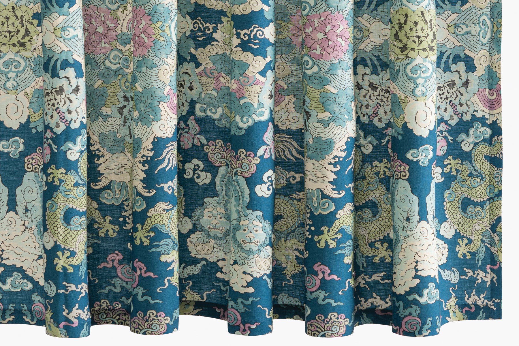 Celebrating the fantastical motifs of ancient myth and legend, Schumacher's Magic Mountain features a psychedelic formation of foo dogs and fire-breathing dragons. Printed in Portugal on our signature tale linen, this is a collection designed to make a statement- the perfect backdrop for both special occasions and everyday dining.