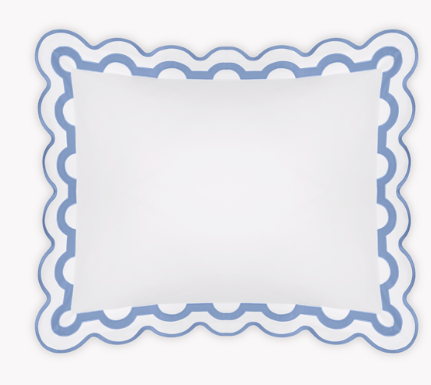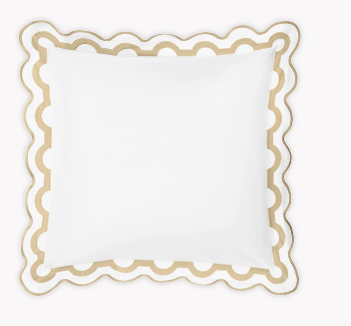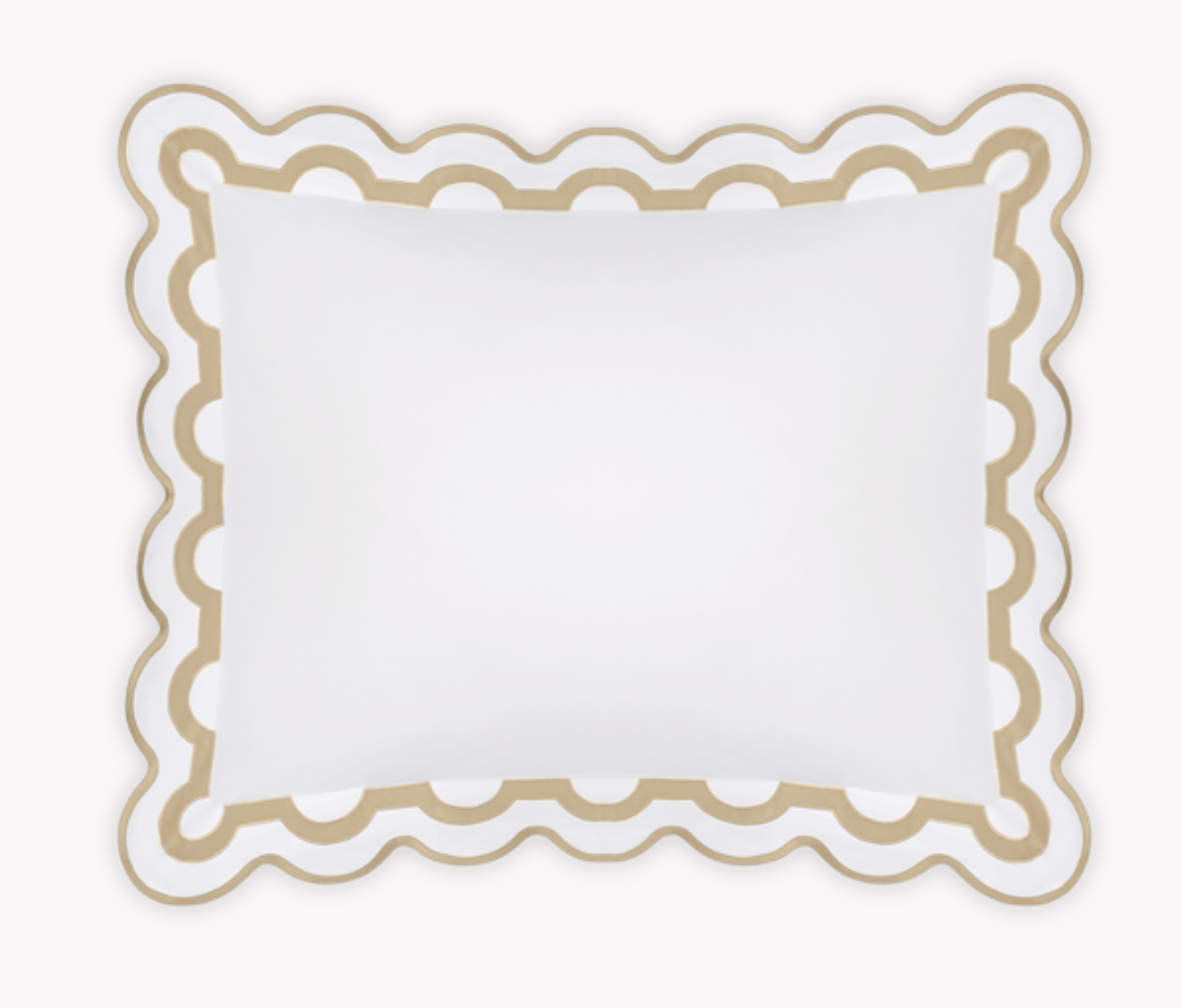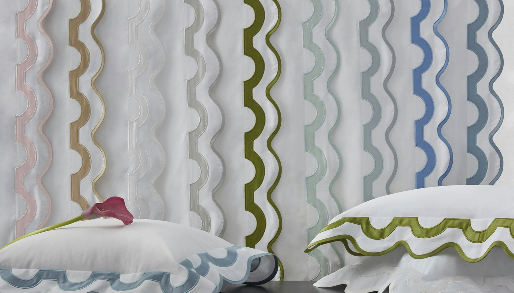 Inspired by a stroll down Worth Avenue in Palm Beach, the unique arch trim of shop awnings becomes a tasteful complement to our soft and luxurious Milano Egyptian cotton percale bedding, woven in Italy.