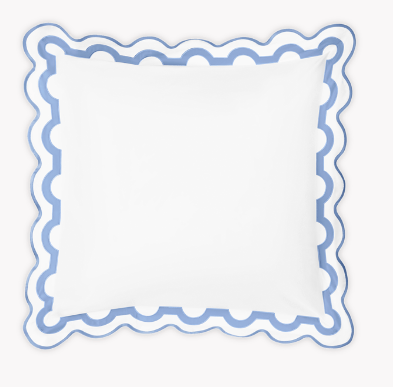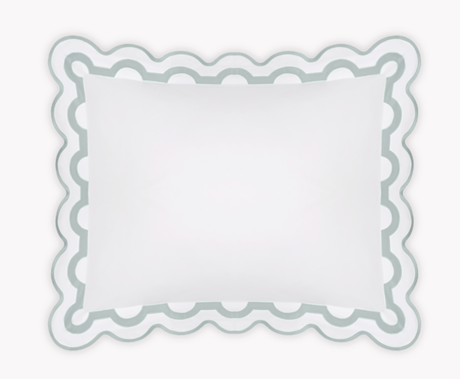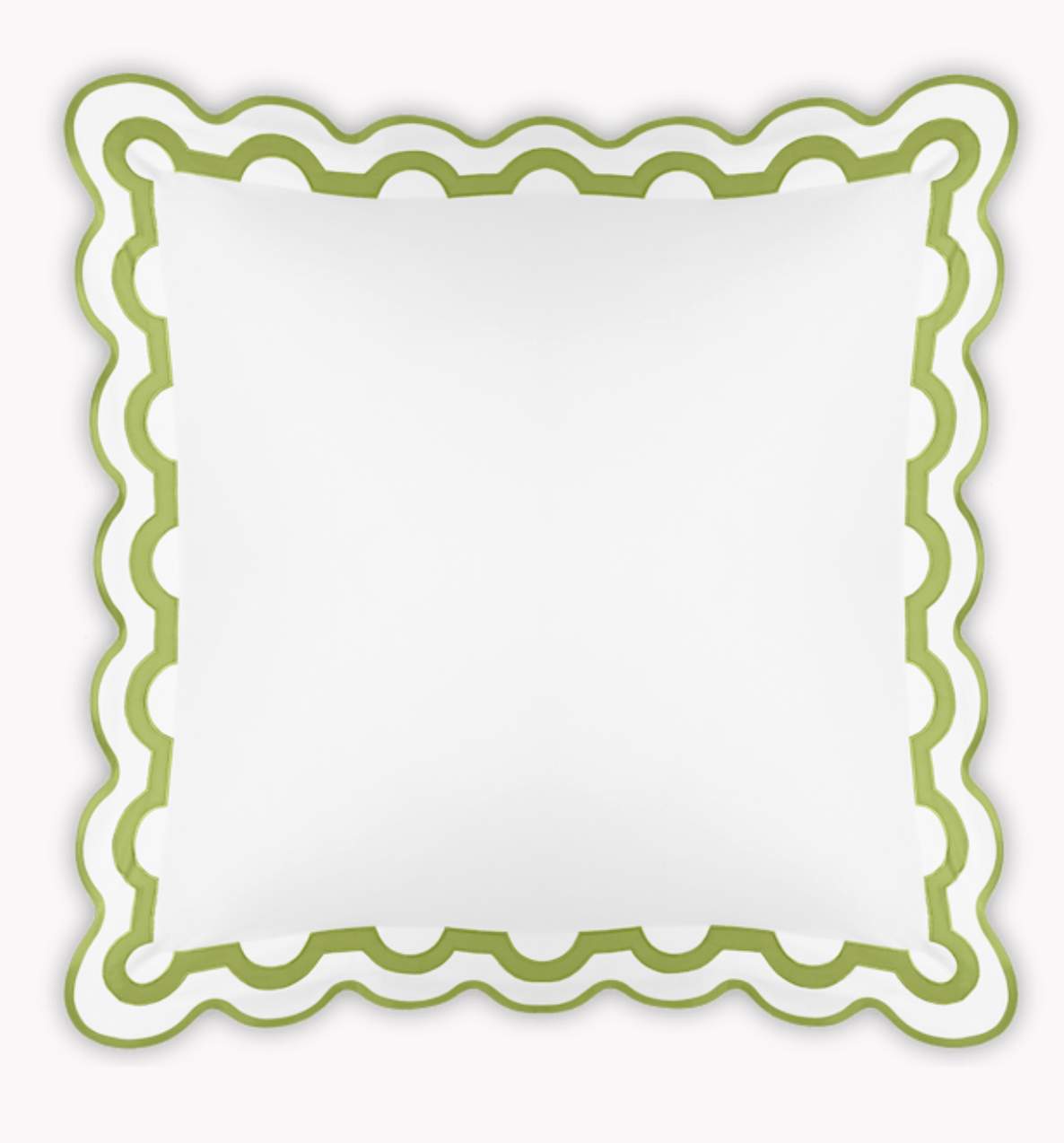 Inspired by a stroll down Worth Avenue in Palm Beach, the unique arch trim of shop awnings becomes a tasteful complement to our soft and luxurious Milano Egyptian cotton percale bedding, woven in Italy.