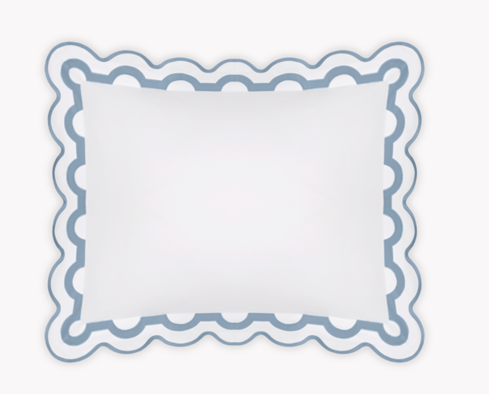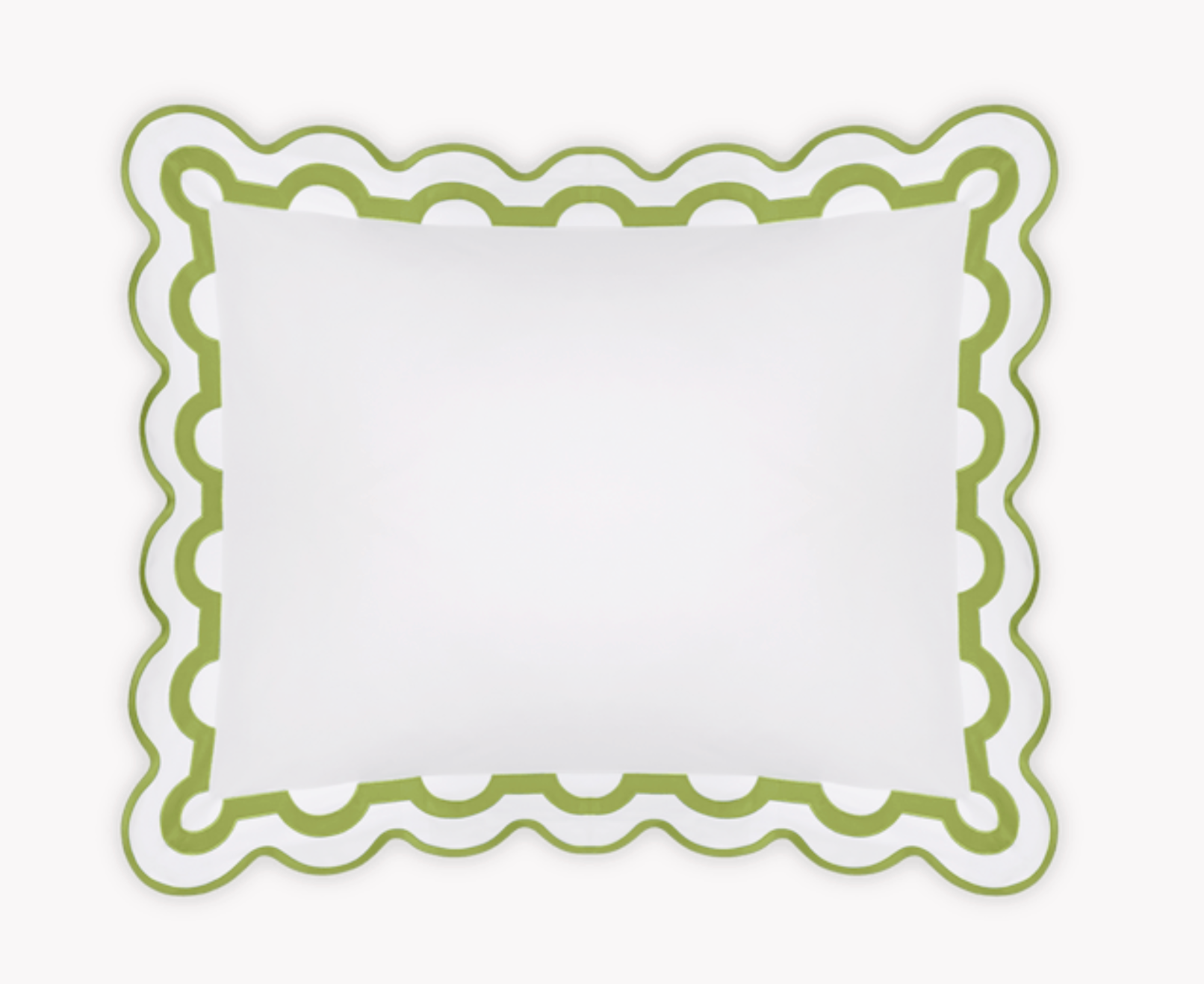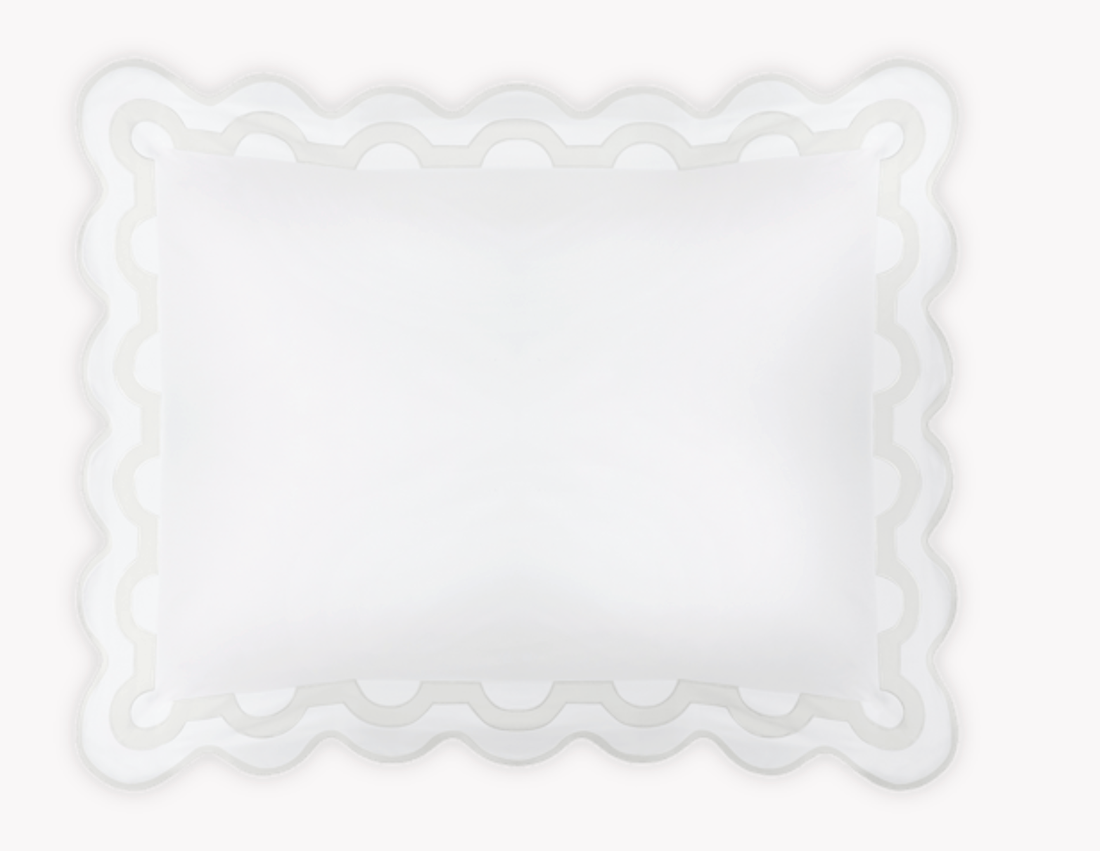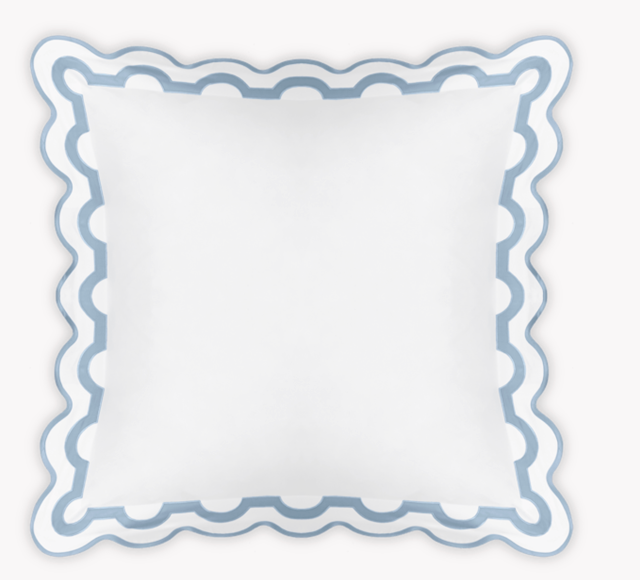 Inspired by a stroll down Worth Avenue in Palm Beach, the unique arch trim of shop awnings becomes a tasteful complement to our soft and luxurious Milano Egyptian cotton percale bedding, woven in Italy.