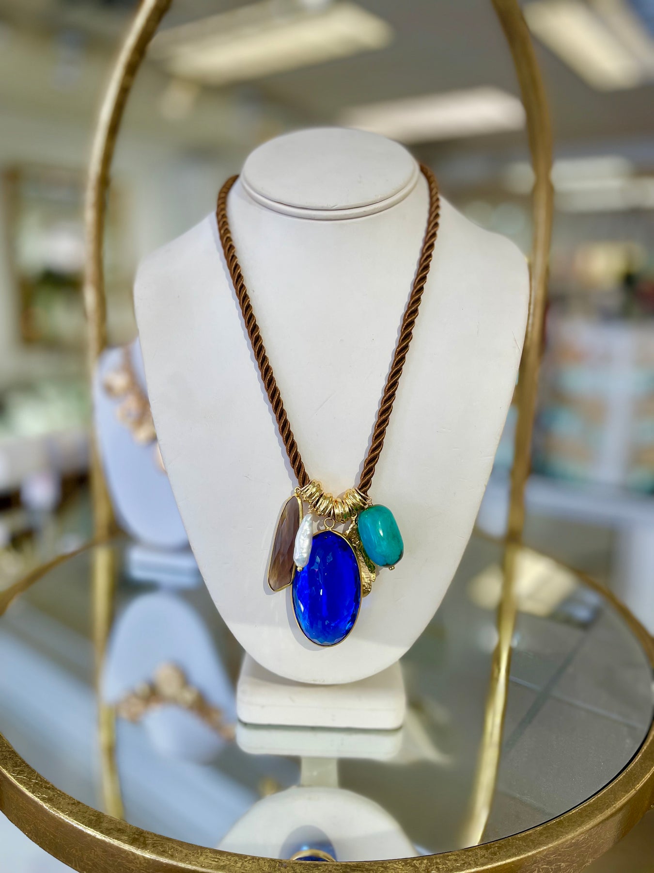 Elevate your style with the Reverie Multi Charm Brown Cord Necklace, a versatile accessory that blends earthy tones with meaningful charms. This necklace adds a touch of bohemian elegance to any outfit, making it perfect for both casual and dressy occasions. Its durable brown cord ensures comfortable wear, while the thoughtfully designed charms create a unique statement. Make every look unforgettable with this distinctive piece that complements your individuality and enhances your everyday wardrobe.